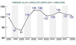 Reportyorların Azadlığı və Təhlükəsizliyi İnstitutunun rəhbəri Emin Hüseynov deyir ki, Azərbaycan jurnalistlərin həbsinə görə keçən il tutduğu pillədən az da olsa aşağı düşüb və bunu mənfi qiymətləndirmək olmaz. O, bildirir ki, rəhbərlik etdiyi qurumun hesablamasına görə hazırda Azərbaycanda 5 həbsdə olan jurnalist var. Qənimət və Sakit Zahidovlar, Eynulla Fətullayev, Müşfiq Hüseynov və Əli Həsənov. Bəzi qurumların, eləcə də Jurnalistləri Müdafiə Komitəsinin həbsdə olan jurnalist kimi qeyd etdiyi Novuzəli Məmmədov isə onun sözlərinə görə jurnalist fəaliyyətindən daha çox siyasi baxışlarına görə həbs olunub. Emin Hüseynov bildirir ki, Azərbaycanda həbsdə olan jurnalistlər adı altında qeyd olunan insanlara qarşı müxtəlif ittihamlar irəli sürülsə də onlar hamısı məhz peşə fəaliyyətinə görə həbs olunublar.