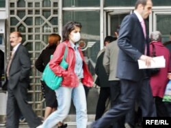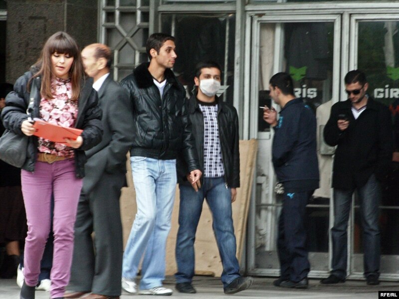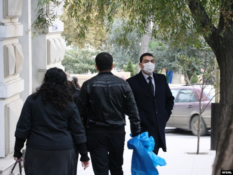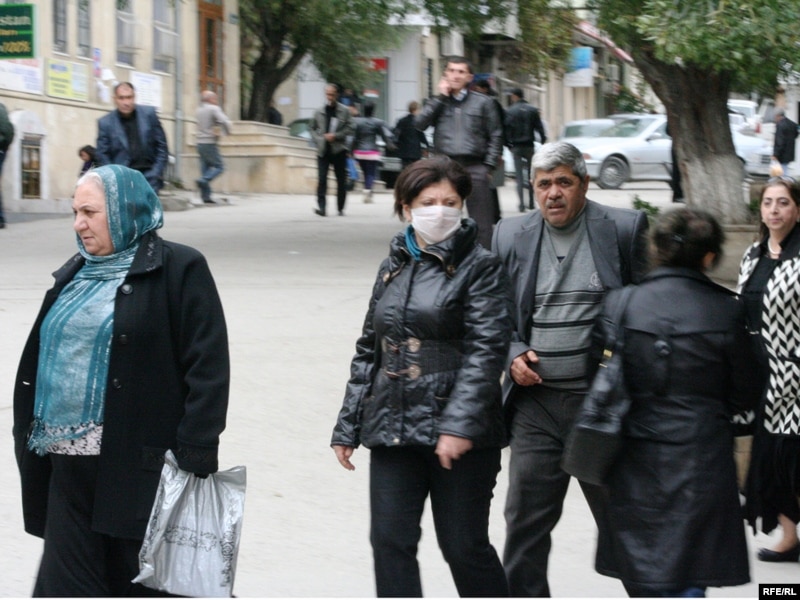 Bakıda qripdən qorunmağa çalışan maskalı sakinlər, 9 noyabr 2009