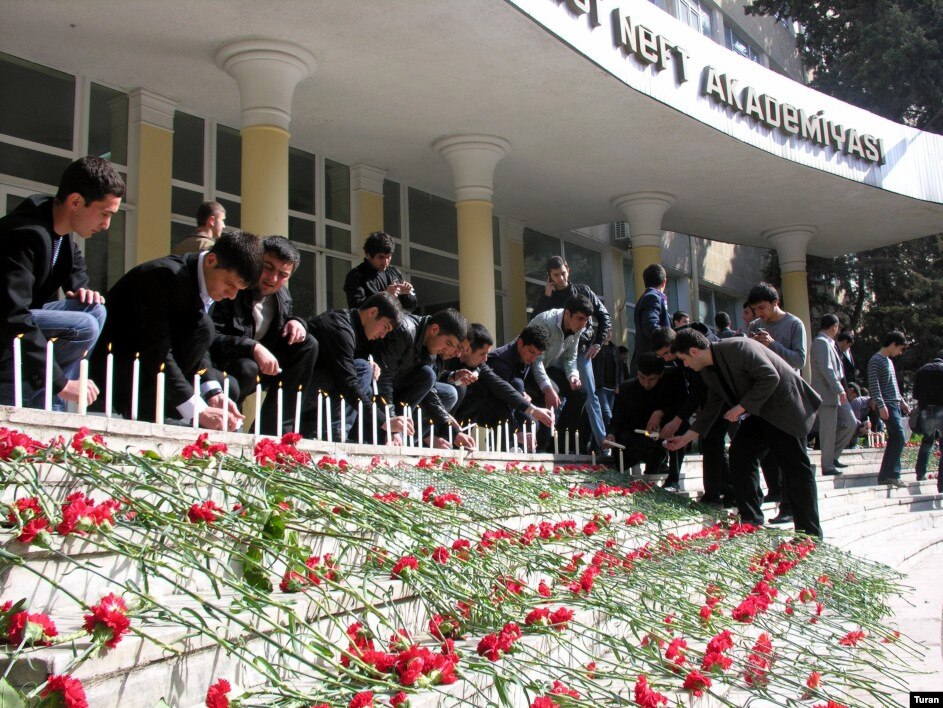 Neft Akademiyasında öldürülən tələbələrlə bağlı anım mərasimi keçirilir. Akademiyanın girişində pilləkənlərə qərənfillər düzülüb. Akademiyada dərslər təxirə salınıb.