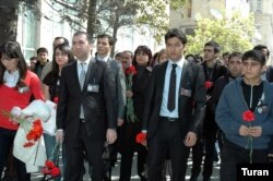 Akademiyanın qarşısına gələn tələbələr «terrora yox» kimi şüarlar səsləndiriblər. Polis bunun qarşısını alıb və yalnız gül qoymalarına icazə verib.