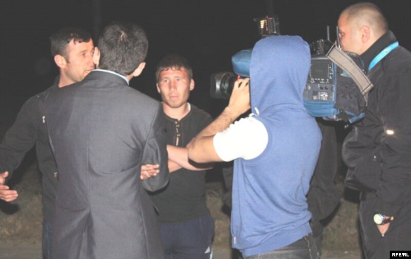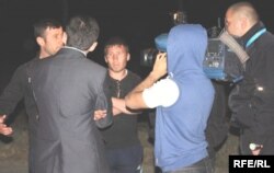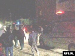 Polislər hərbi hospitalın qarşısına yığılan adamları və jurnalistləri kənarlaşdırırlar. Onlar jurnaslitlərə çəkiliş aparmağa da imkan vermirlər.