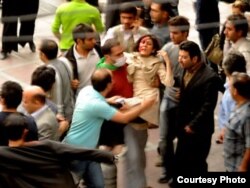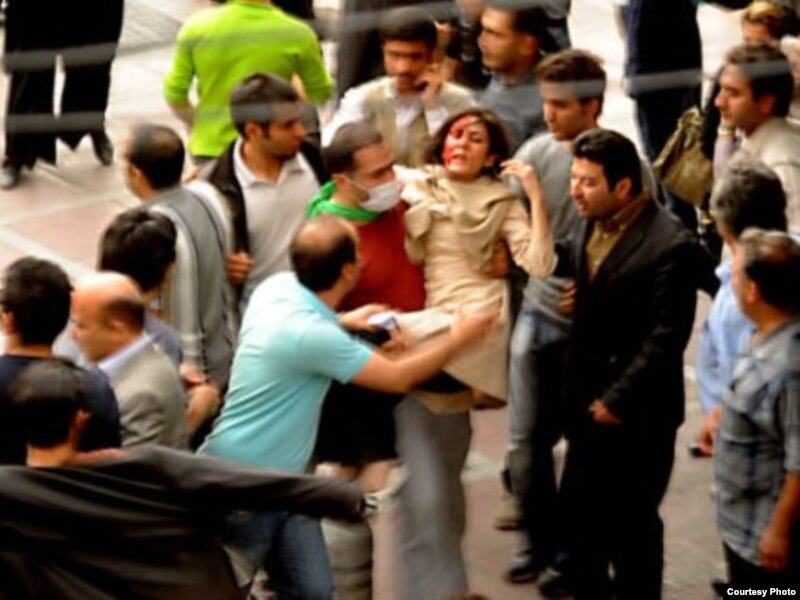 Başqa bir yerdə keçirilən nümayişdə isə nümayişçilər polisi yerə yıxaraq döyürdülər. Soyadını demək istəməyən tələbə, Mehrdad deyir ki, «onlar öz nəticələri ilə bizi təhqir etdilər». Onun yanındakı başqa biri isə «Biz Musəvini istəyirik» dedi.