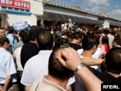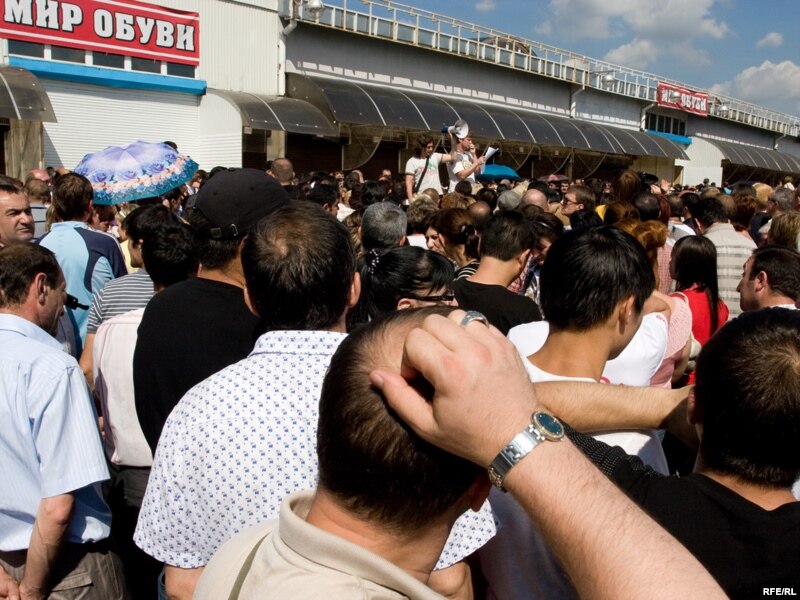 Çerkizov bazarı bağlananda işsiz qalanlar Rusiya prezidentinə məktub yazmaq üçün toplaşıblar. 16 iyul 2009