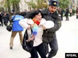 Aygün Quliyeva«Məni zorla maşına basanda başım maşının dəmirinə dəydi. Polis çox pis rəftar edirdi, qızları yerdə sürüyürdü, bizi təhqir edirdilər ki, qız xeylağının nə işi var aksiyada, yanımızda oğlanlara pis söyüş söyürdülər».