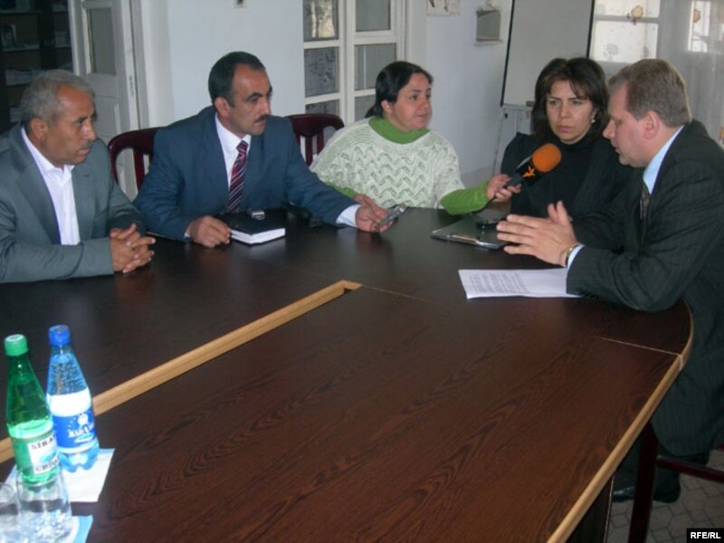 Məlahət Nəsibova bölgəyə səfər edən beynəlxalq təşkilat nümayəndələrindən müsahibə alarkən.