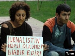 Dalğa Gənclər Hərəkatının fəalları Eynulla Fəyullayevin müdafiəsi ilə bağlı aksiya keçirir. Bakı, 29 oktyabr 2007