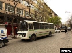 «28 May» metrosunun yaxınlığında saxlanan Vəfa Cəfərova xəbər verir ki, onları polis müşayiəti ilə avtobusda gözlədirlər. Özünü təqdim etməyən polis onu 15 sutkalıq həbs ilə hədələyir.