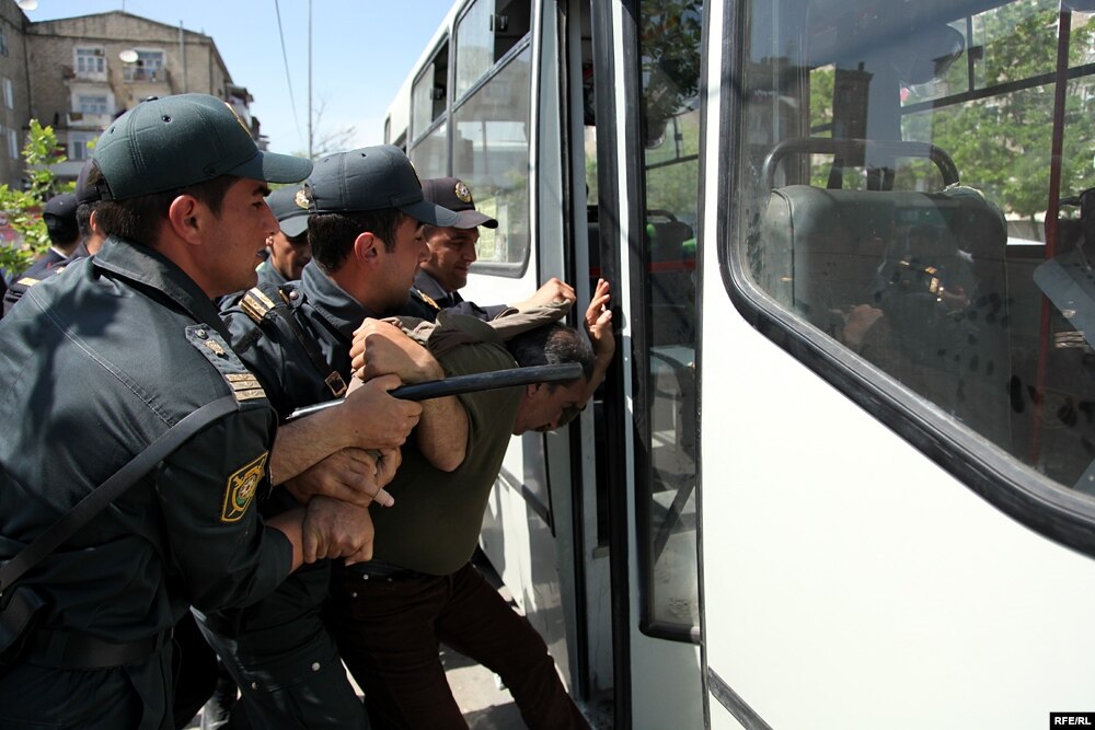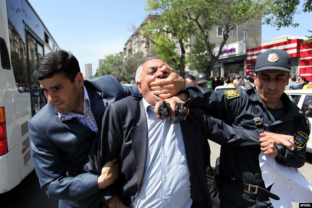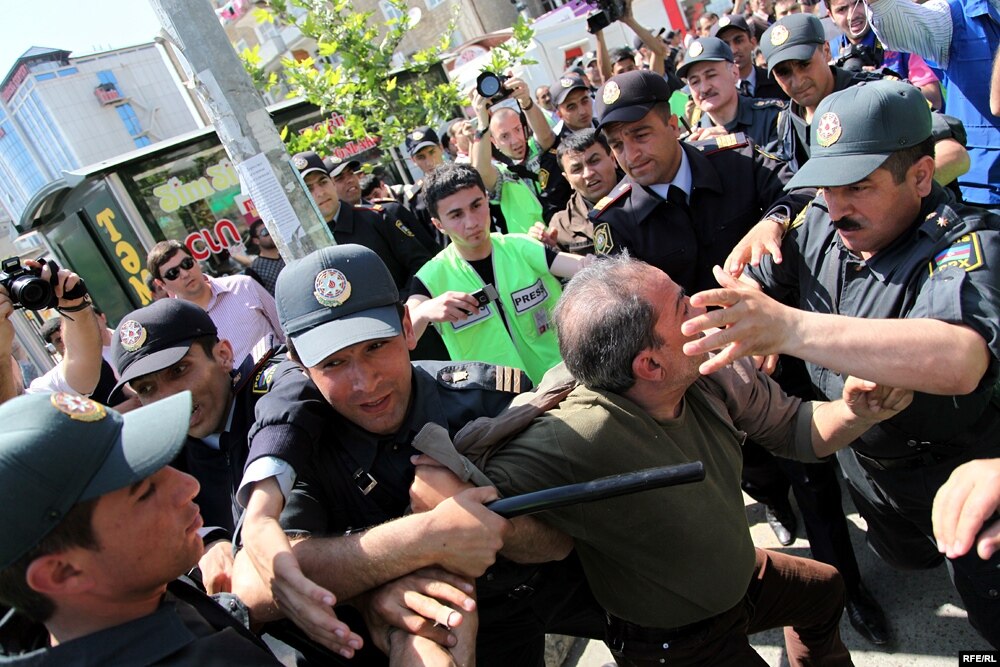 «10 nəfərə qədər adam - partiyanın sədr müavini Razi Nurullayev, Suraxanı şöbəsinin sədri Vaqif Talıbov, Əzizbəyov rayon şöbəsindən Ali Məclisin üzvü Şakir Abışov evlərindən çıxan zaman həbs olunublar. Buna baxmayaraq aksiya iştirakçıları bir araya gəldilər, «Azad seçki!», «Ədalətli seçki!», «Azadlıq!» tələblərini irəli sürdülər. Xeyli adam həbs olunsa da, tələblər səsləndirildi».