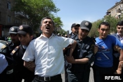 «İstefa!», «Bu rejimin onsuz da sonu olacaq!» kimi şüarlar səsləndirən Əlihüseyn Ağayev adlı bir nəfər polis tərəfindən saxlanılıb.