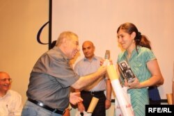 Qaliblərə “Ədəbi Azadlıq” mükafatının prizlərini mərasimə qatılan xalq yazıçısı Əkrəm Əylisli təqdim edib.