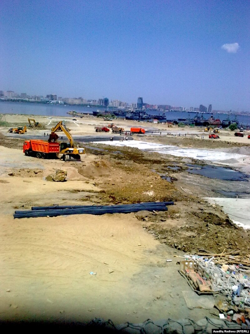 Территория стройки на площади государственного флага огорожена забором, но охранник не позволяет стоять даже рядом. Продолжая разговор с ним, замечаю, что и в обеденный перерыв работа не прекращается, рабочие выходят на обед по очереди. На них нет спецодежды, лишь старые, испачканные брюки и сорочки. Мы так и не смогли поговорить с ними: только хотели заговорить с турецким рабочим, возвращавшимся после обеда, как тот самый охранник молниеносно его от нас удалил. Тем не менее, сквозь каменный забор рабочий со стройки рассказал, что получает высокую зарплату и занят в основном работой по железу. Сказал, что кроме турок на стройке работают и местные.