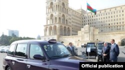 Ознакомившись с автомобилями, президент Азербайджана сел за руль и проехал на данной машине модели ТХ4.