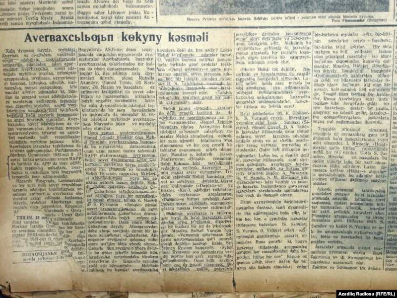 “Kommunist” qəzetinin 27 may 1937 –ci il sayında “Averbaxçılığın kökünü kəsməli” adlı məqalə yer alır.