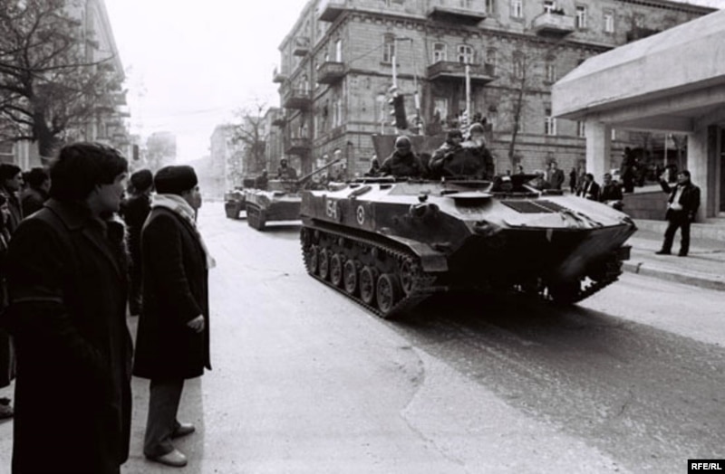 “Tanklar bizim topaya yaxınlaşanda sürəti daha da artırdılar. Dəqiq yadımda deyil, amma səhv etmirəmsə, irəlidə gələn tank idi, dalınca gələnlər isə “BMP”lər. Tank düz ocağın üstünə sürdü, ocaq yerində bir-neçə dövrə vurdu, hamı gözləyirdi ki, “Olimp”ə sarı dönəcək, amma əksinə oldu, “Musabəyov”a tərəf üz tutdu, arxasınca gələn “BMP”lərdən bəziləri isə “Olimp”ə doğru buruldu və yol boyu qaçışan insanlara atəş açmağa başladı.