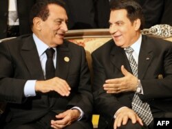 Misirn prezidenti Hüsnü Mübarək (solda) Tunisin devrilmiş prezidenti Zine El Abidine Ben Ali ilə Ərəb Liqası ölkələrinin sammitində, 10 oktyabr 2010