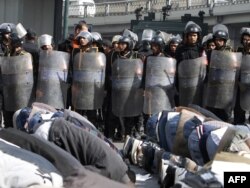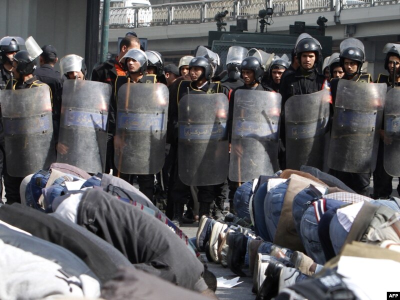 Сотни демонстрантов в Каире приостановив акцию, совершают дневную молитву прямо на улицах столицы Египта.