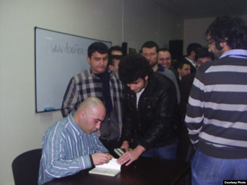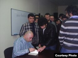 Seymur Baycan yeni kitabını oxucular üçün imzalayır. 20 fevral 2011