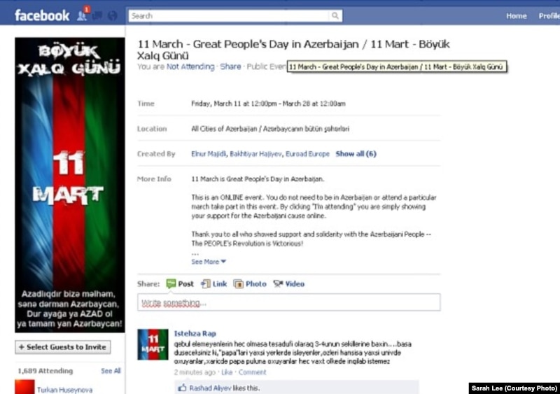 Bir neçə gündür «Facebook» sosial şəbəkəsində «11 mart – Böyük xalq günü» adlı qrup yaradılıb.