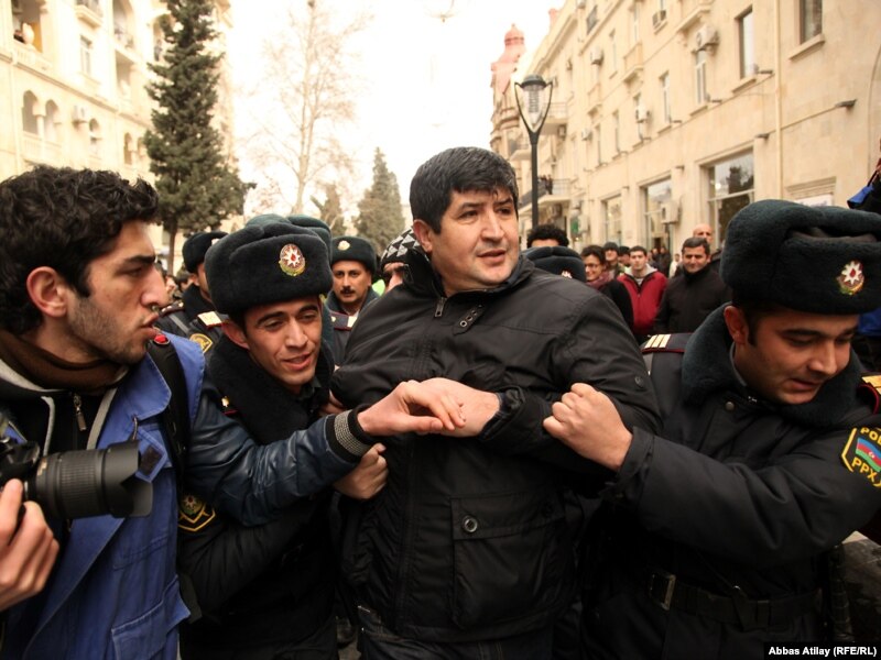 Джамиль Гаджиев держал в руках плакат с надписью «Azad ol!»-«Стань свободным!» и выкрикивал лозунги рядом со зданием Нефтяной академии. Полицейские, забрав плакат, отпустили его, однако затем лица в гражданском усадили его в машину и увезли.