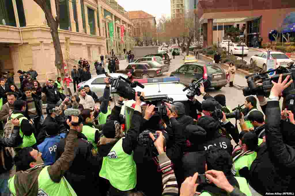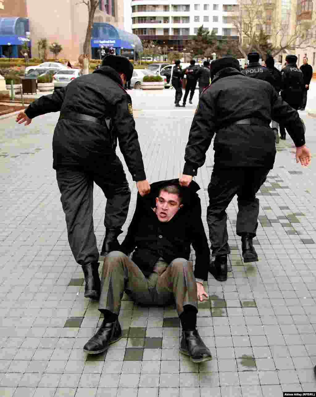 Полиция вытесняет протестующих на Площади Фонтанов, Баку 12 марта 2011
