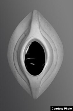 скульптура, обозначенная в каталоге как «Предстоящая» и представляющая собой одетую в черное мусульманскую женщину и объект под названием «Черный камень», интерпретирующий в вольной форме образ Черного камня в Мекке.