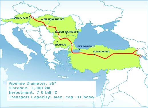 «Nabucco» kəməri qazın Xəzər hövzəsindən və Yaxın Şərqdən Avropa Birliyi ölkələrinə nəqlini nəzərdə tutur.