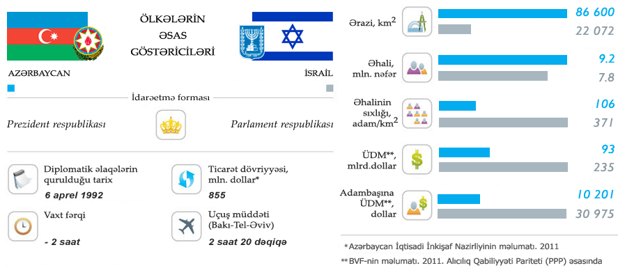 Azərbaycan İsrailin neft ehtiyacının böyük hissəsini ödəyir. Bu ilin fevralında Azərbaycanın İsraildən 1.6 milyard dollarlıq silah alması barədə xəbərlər yayılıb. İsraillə çəkişmədə olan Iran bundan narahat olsa da Azərbaycan rəsmiləri həmin silahıların İrana qarşı yönəlmədiyini bildiriblər.