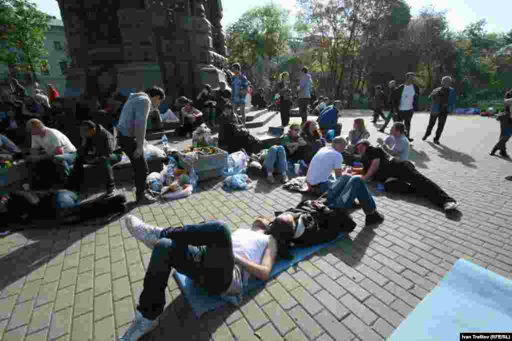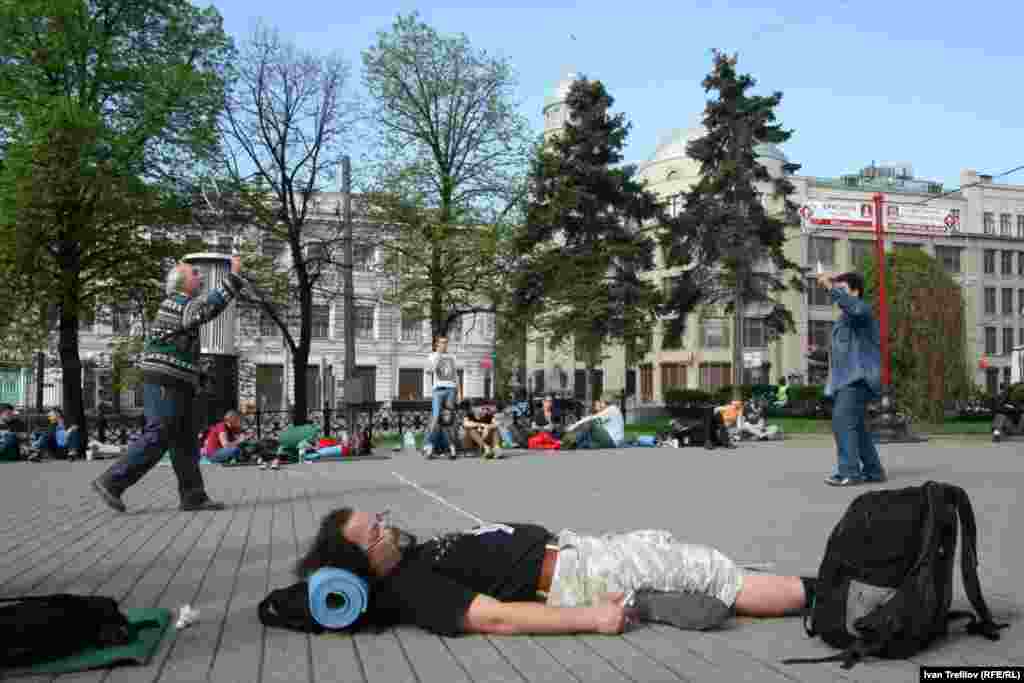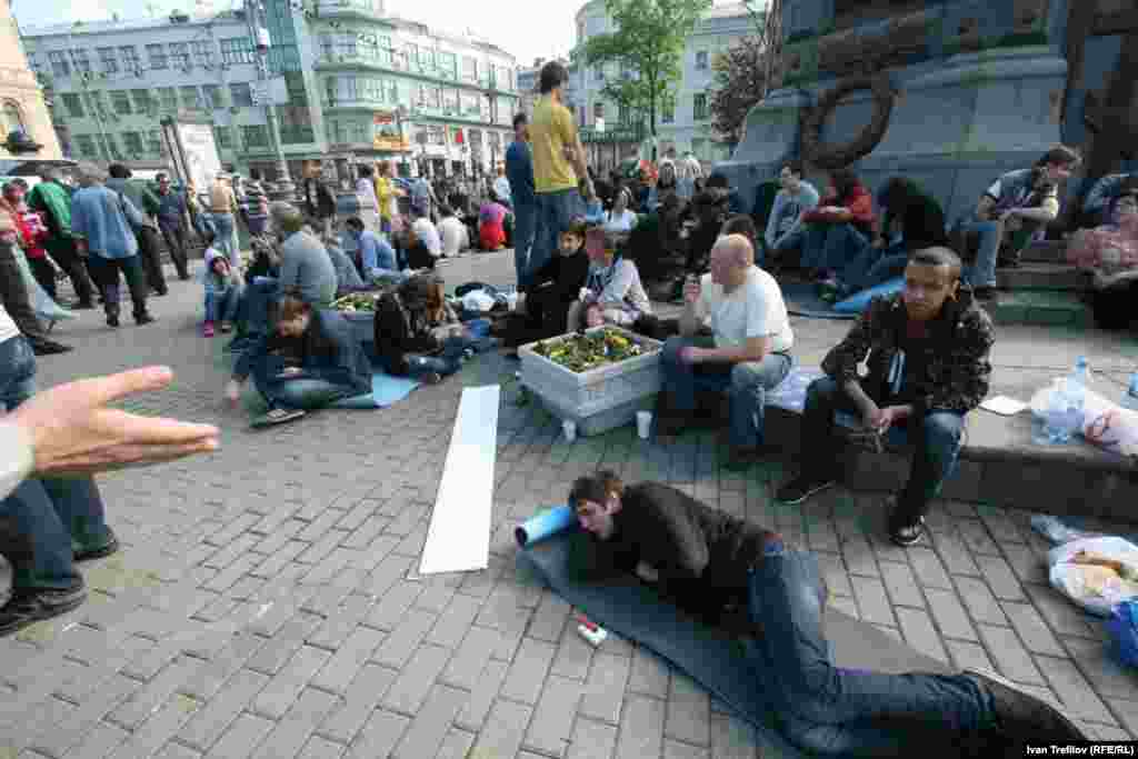 Mayın 7-də Vladimir Putinin prezident kimi andiçmə məraismindən sonra onun seçkini saxtalaşdırdığını düyən müxalifət fəalları səhərə qədər paytaxtr Moskvanın meydanlarından çəkilməyiblər. AzadlıqRadiosunun rus xidmətinin çəkdiyi fotolar.