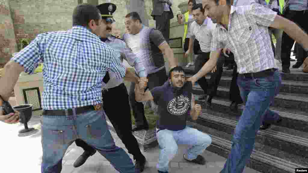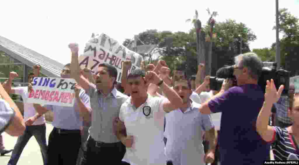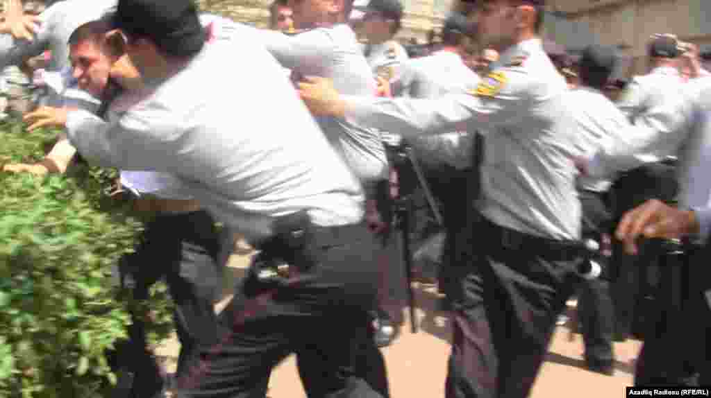 В понедельник в Баку оппозиция попыталась провести акцию с требованием свободы собраний и освобождения 12 активистов, признанных Amnesty International "узниками совести". ФОТО: РадиоАзадлыг и Reuters