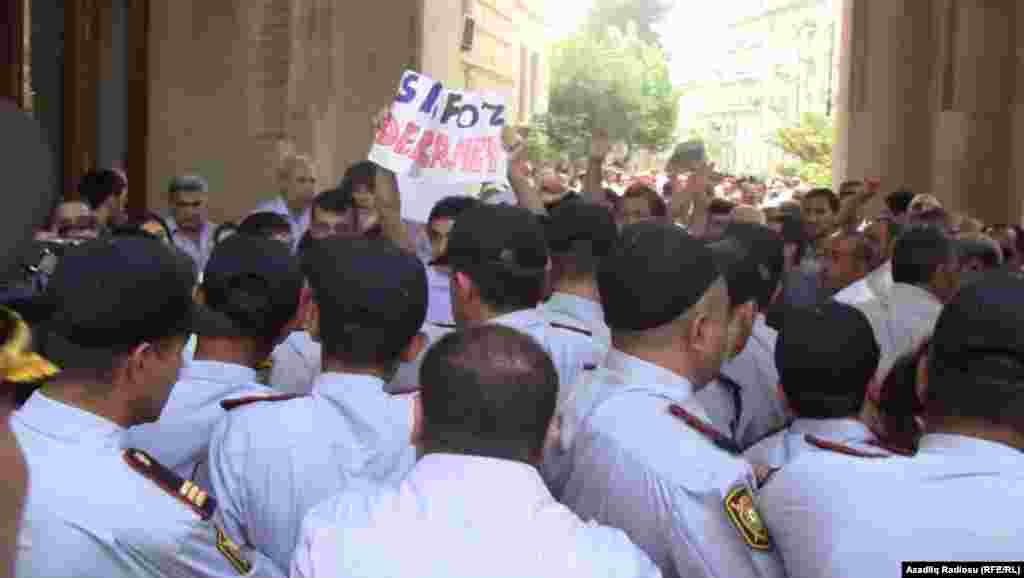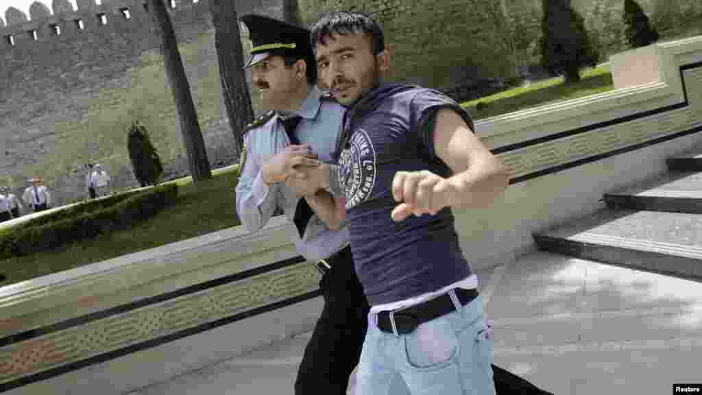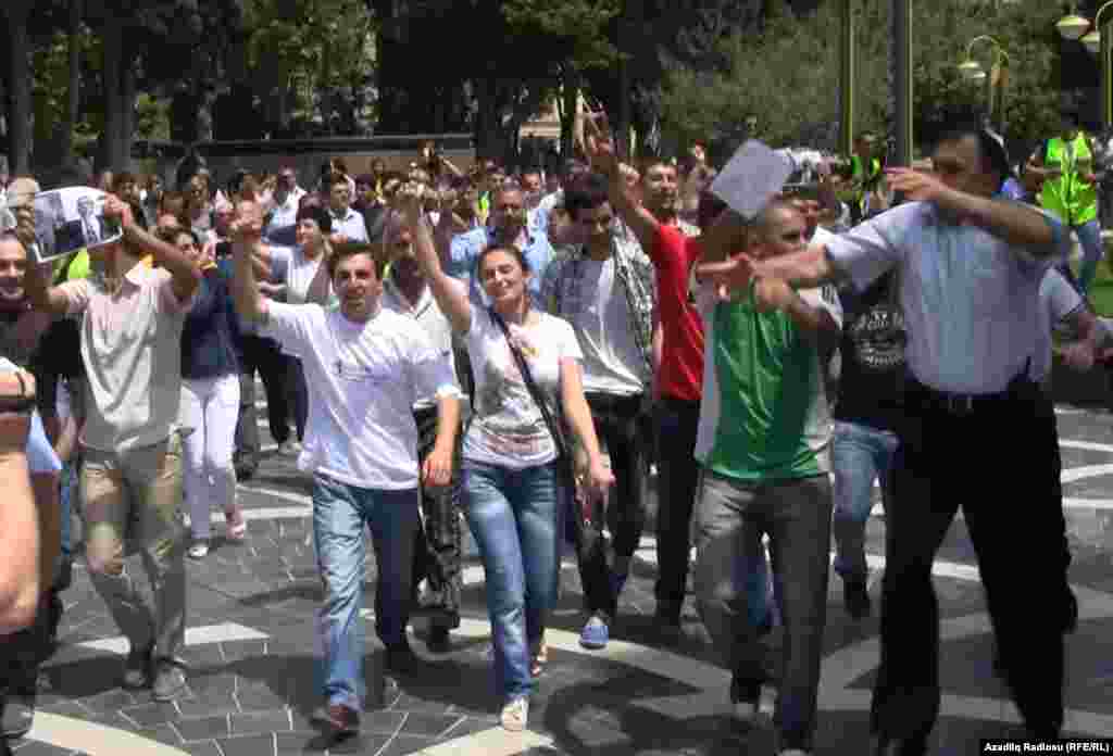 В понедельник в Баку оппозиция попыталась провести акцию с требованием свободы собраний и освобождения 12 активистов, признанных Amnesty International "узниками совести". ФОТО: РадиоАзадлыг и Reuters