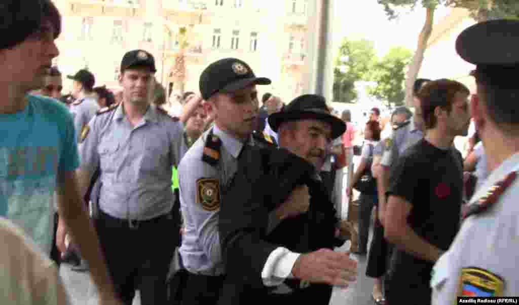 В понедельник в Баку оппозиция попыталась провести акцию с требованием свободы собраний и освобождения 12 активистов, признанных Amnesty International "узниками совести". ФОТО: РадиоАзадлыг и Reuters
