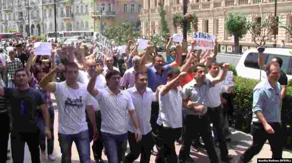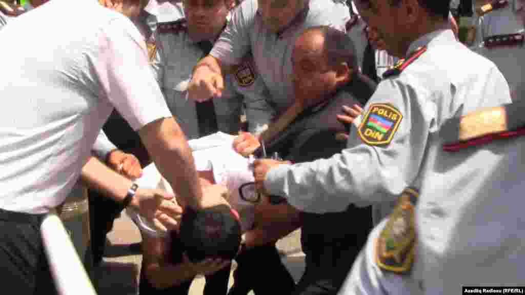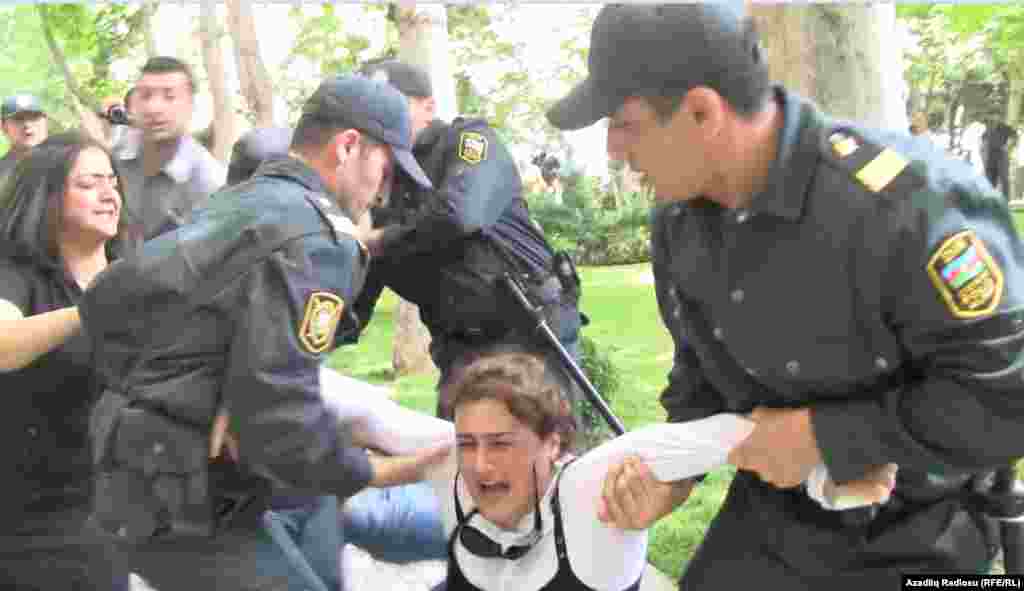 В понедельник в Баку оппозиция попыталась провести акцию с требованием свободы собраний и освобождения 12 активистов, признанных Amnesty International "узниками совести". ФОТО: РадиоАзадлыг и Reuters