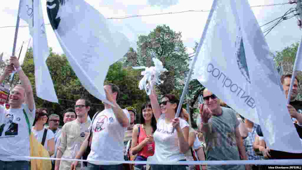 Young protesters wore white ribbons, a symbol of Russia's pro-democracy movement.