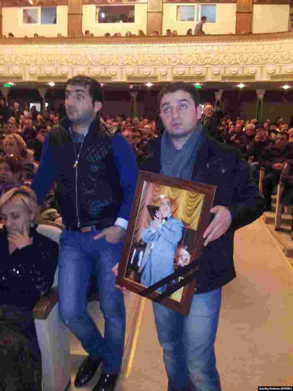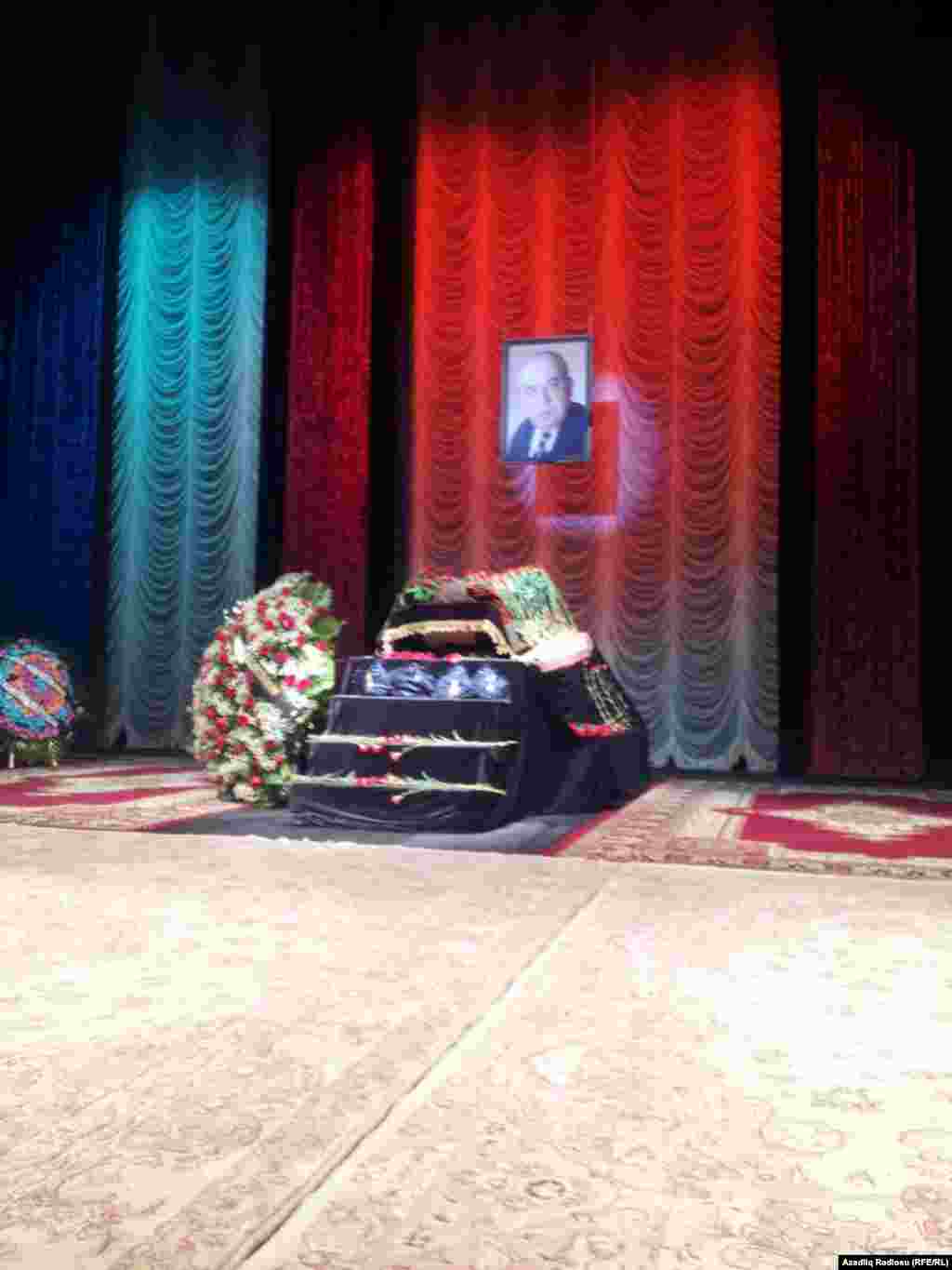 На церемонии прощания с народным артистом Азербайджана участвуют родные покойного, его друзья и представители общественности