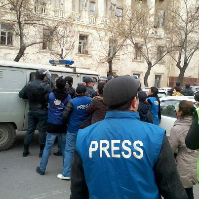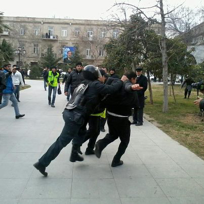Aksiya «Park Inn» otelinin qarşısında, «Park Bulvar» Mərkəzi ətrafında davam edir. Polis səsgücləndiricilərlə aksiyaçıları dağılışmağa çağırır.