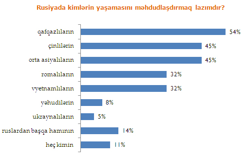 Sorğuda başqa sual belə olub ki, Rusiya ərazisində kimlərin yaşamasını məhdudlaşdırmaq lazımdır?