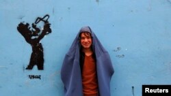 Kabulun küçələrində gənc fəallar qadınlara qarşı zorakılığa diqqət cəlb etmək üçün burqa geyiniblər.