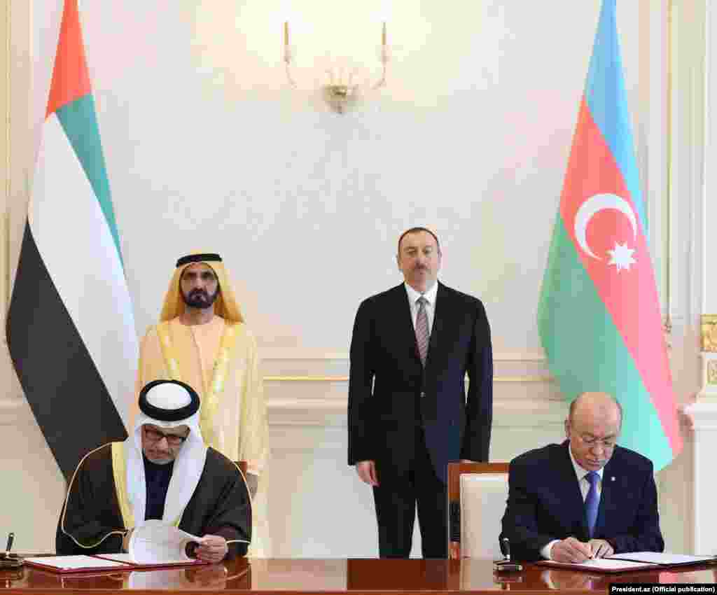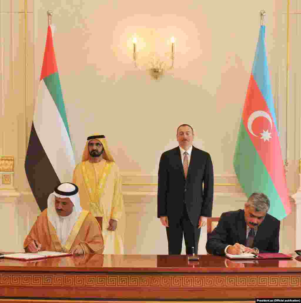 Geniş tərkibdə görüş başa çatdıqdan sonra Prezident İlham Əliyevin və Məhəmməd bin-Rəşid Əl-Maktumun iştirakı ilə Azərbaycan Respublikası və Birləşmiş Ərəb Əmirlikləri arasında sənədlərin imzalanması mərasimi olub.