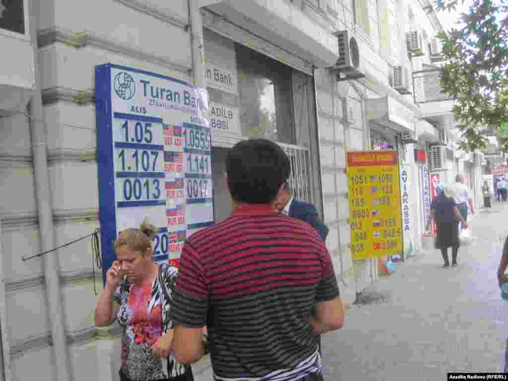 AzadlıqRadiosunun əməkdaşları valyutadəyişmə məntəqələrinin qarşısından reportaj hazırlayıblar.