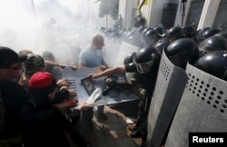 Ukrayna Konstitusiyasına əlavələr edilməsinə, Donbasa xüsusi status verilməsinə etiraz edənlər Ali Radanın qarşısında əl qumbarası partladılıb.