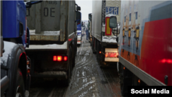 Novosibirsk yaxınlığında federal yolda 300-dən çox yük maşını yolun hər iki kənarı boyu bir kilometrə qədər məsafəni tutub.