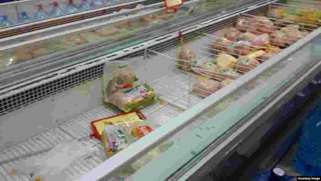 Эти фотографии сделаны прошлой ночью в одном из супермаркетов Баку, вблизи станции метро "Нефтчиляр". После того, как манат подешевел в отношении доллара США, люди повально направились в магазины
