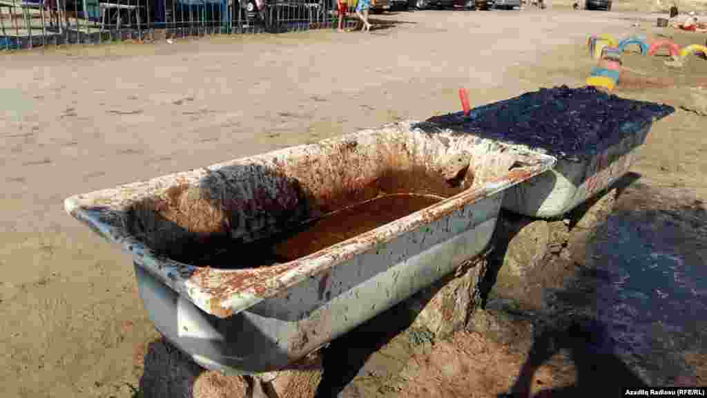 Bakı yaxınlığında palçıq gölündə çimənlər- FOTOLAR