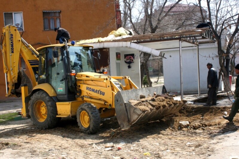 Ərazidə olan şəhər icra hakimiyyəti memarlıq şöbəsinin müfəttişi Kənan Babayevin AzadlıqRadiosuna dediyinə görə, söküntü işləri şəhərin abadlıq planına uyğun aparılır: «Şəhər abadlaşmasında «qırmızı xətt» deyilən bir şey var, ona uyğun olaraq binaların qarşısında olan müvəqqəti xarakter daşıyan köşklər yığışdırılır. Daşdan olan tikinti quraşdırmalara hələ ki, dəyilmir».