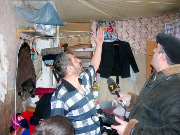 - Burda insan yaşayar! Biz vəhşi deyilik ki, biz də insanıq. Bura bizim mətbəxdir. Burda neyləmək olar? Kanalizasiya suyu yeməyin içinə tökülür. Baxın hamama, görün su necə axır. Kanalizasiya suyu dolub zirzəmiyə. Bu bina çökə bilər. Burda 250-300 insan yaşayır. Ölüm-itim olandan sonra deyəcəklər ki, bizdə varıq.