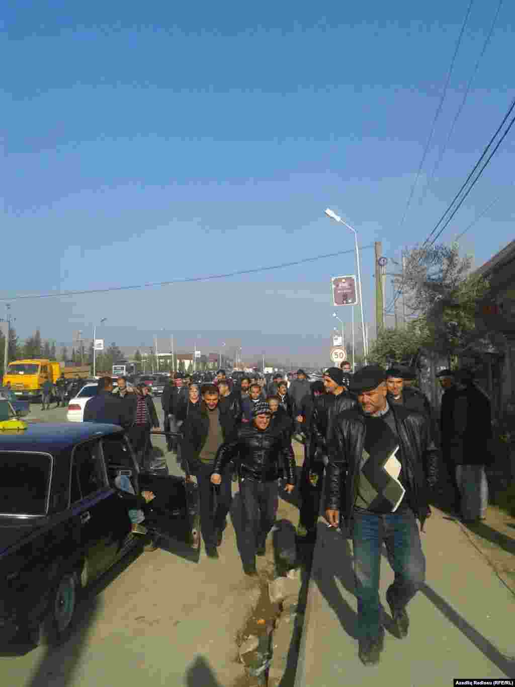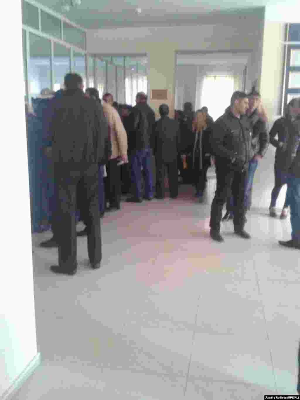Bu şəkilləri AzadlıqRadiosuna saytımızın oxucusu Ağdamdan yollayıb. Onun verdiyi məlumata görə, fevralın 15-də rayonda əmək yarmarkası keçiriləcəyi elan edilibmiş. Amma yarmarkanın keçiriləcəyi idman kompleksinin önünə toplaşan insanlar "təxirə salınıb" elanı ilə qarşılaşıblar. Məşğulluq İdarəsinə yollanan insanlara da yarmarkanın təxirə salındığını deyiblər. Bundan sonra onlar rayon icra hakimiyyətinə yürüş ediblər. İcra başçısının müavini onların qarşısına çıxaraq yarmarkanın sentyabrda keçiriləcəyini söz verib... Buna da bax: Şirvanlılar iş tələb edir (Fotolar)