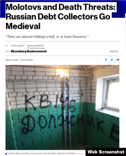 Rusiyanın iqtisadi vəziyyəti pisləşdikcə onun vətəndaşları borclarını ödəməkdə daha çox çətinlik çəkirlər. Borc toplayanlarsa hövsələsizliklə onları təqib edirlər. Son aylar ərzində borc toplayan agentlər borcluları təhqir etməkdə, onların maşınlarını vandalizmə məruz qoymaqda, hətta onların mənzillərinin kənarında saxlanmış uşaq arabalarını dağıtmaqda ittiham ediliblər. (Ardı aşağıda)