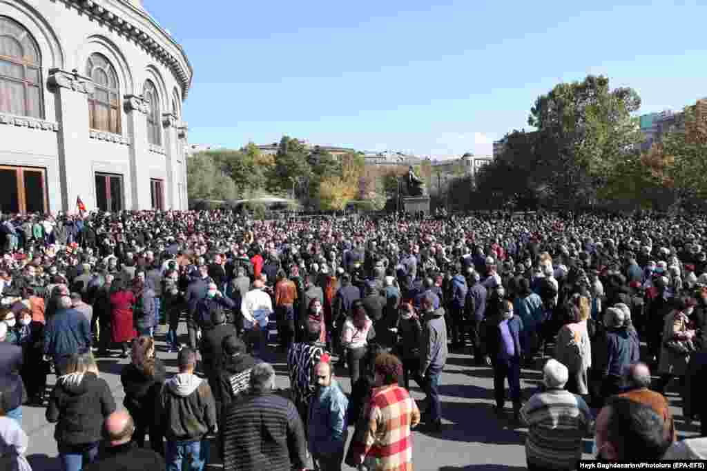 Noyabrın 11-də Ermənistanın müxalif partiya üzvləri etiraz aksiyasına başlayıblar. Polis etirazçılardan bəzilərini saxlayıb. Ermənistan rəhbərliyindən noyabrın 9-da Azərbaycan, Rusiya və Ermənistan rəhbərlərinin imzaladığı sülh razılaşmasına ziddiyyətli bəyanatlar gəlir.