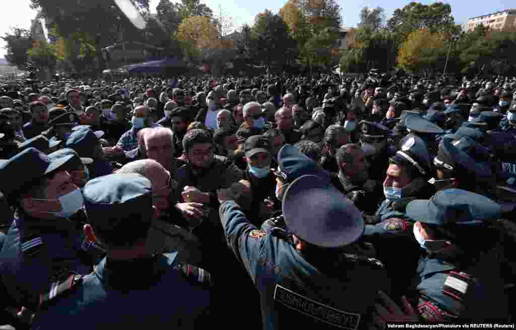 Noyabrın 11-də Ermənistanın müxalif partiya üzvləri etiraz aksiyasına başlayıblar. Polis etirazçılardan bəzilərini saxlayıb. Ermənistan rəhbərliyindən noyabrın 9-da Azərbaycan, Rusiya və Ermənistan rəhbərlərinin imzaladığı sülh razılaşmasına ziddiyyətli bəyanatlar gəlir.