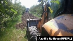 “Buralar əvvəllər sovxoz olub (“sovxoz” qısaldılmış ruscadan çevirəndə, “sovet təsərrüfatı” mənasına gəlir – red.). Sovet dağılandan sonra bölüşdürüb yerli sakinlərə bağ sahəsi kimi istifadəyə veriblər. Ölçüsü 200-300 mm olan borulardan da sovxozun suvarma işində istifadə olunub. İndi su olmadığından, bu borulardan istifadə edə bilmirik. İşlək durumda olan boruya su buraxmaqdansa, gəlib yığışdırıb aparırlar. Üstəlik, kimin haraya apardığını heç kəs açıqlamır. Fəhlələr gecəylə bağlarımıza girib traktorla bağın altını üstünə çevirirlər. Bir də eşidirik ki, bağa giriblər. Şəxsən mən neçə gündür gəlib oturmuşam bağda, traktorları güdürəm”.